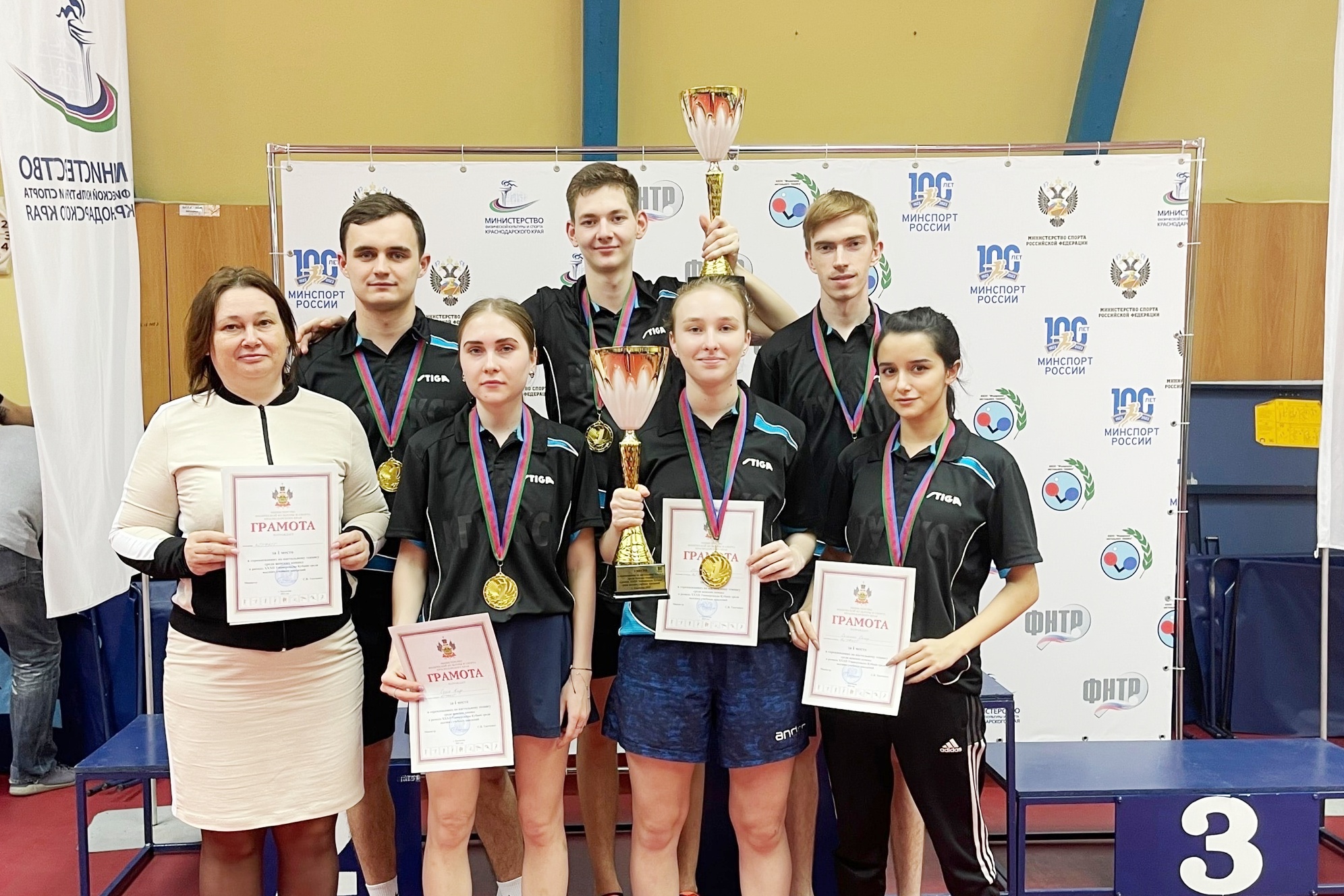 Кубанский государственный университет физической культуры, спорта и туризма представили студенты Юрий Бесчастный, Андрей Масовер, Владислав Нестеров, Кира Седых, Сима Сагакян, Виктория Петрова под руководством доцента кафедры теории и методики спортивных игр Людмилы Анатольевны Дмитренко.