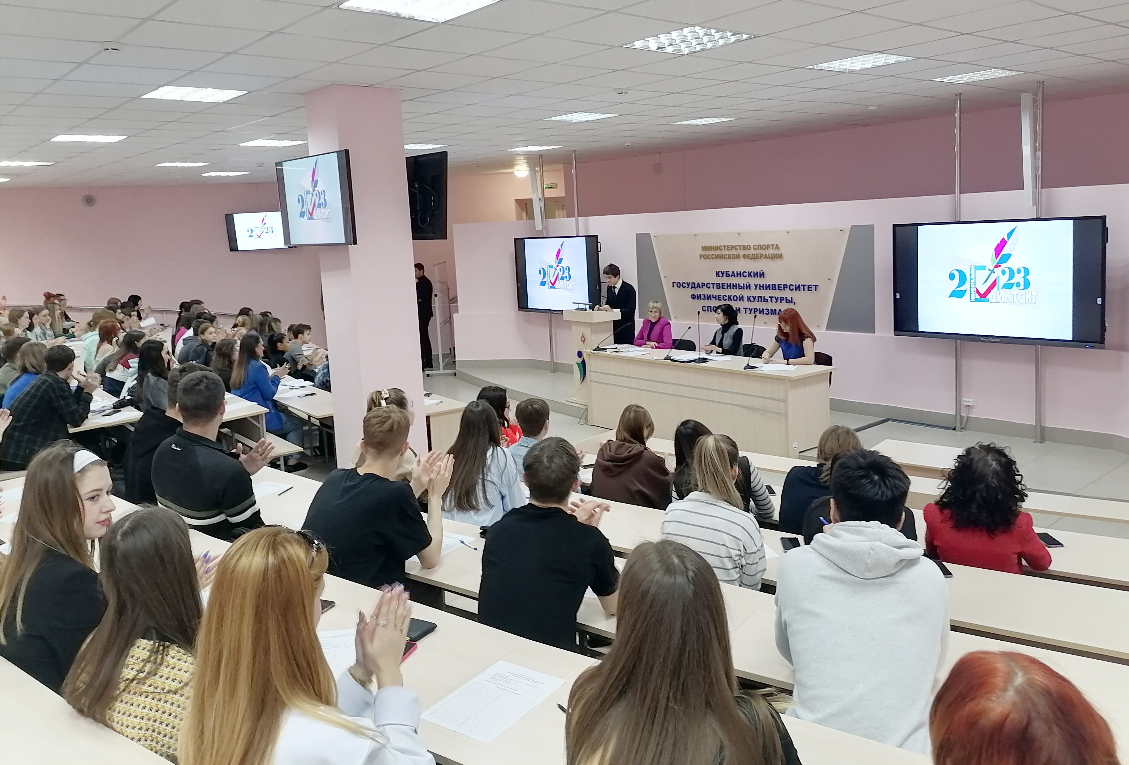 Сегодня на базе Кубанского государственного университета физической культуры, спорта и туризма состоялся Избирательный диктант. В образовательной акции приняли участие около 80 студентов 1-4 курсов факультета сервиса и туризма. Участники диктанта проверили свои знания в области избирательного права, письменно отвечая на вопросы по этой теме. Во второй части диктанта студентам необходимо было развернуто ответить на вопрос творческого характера.