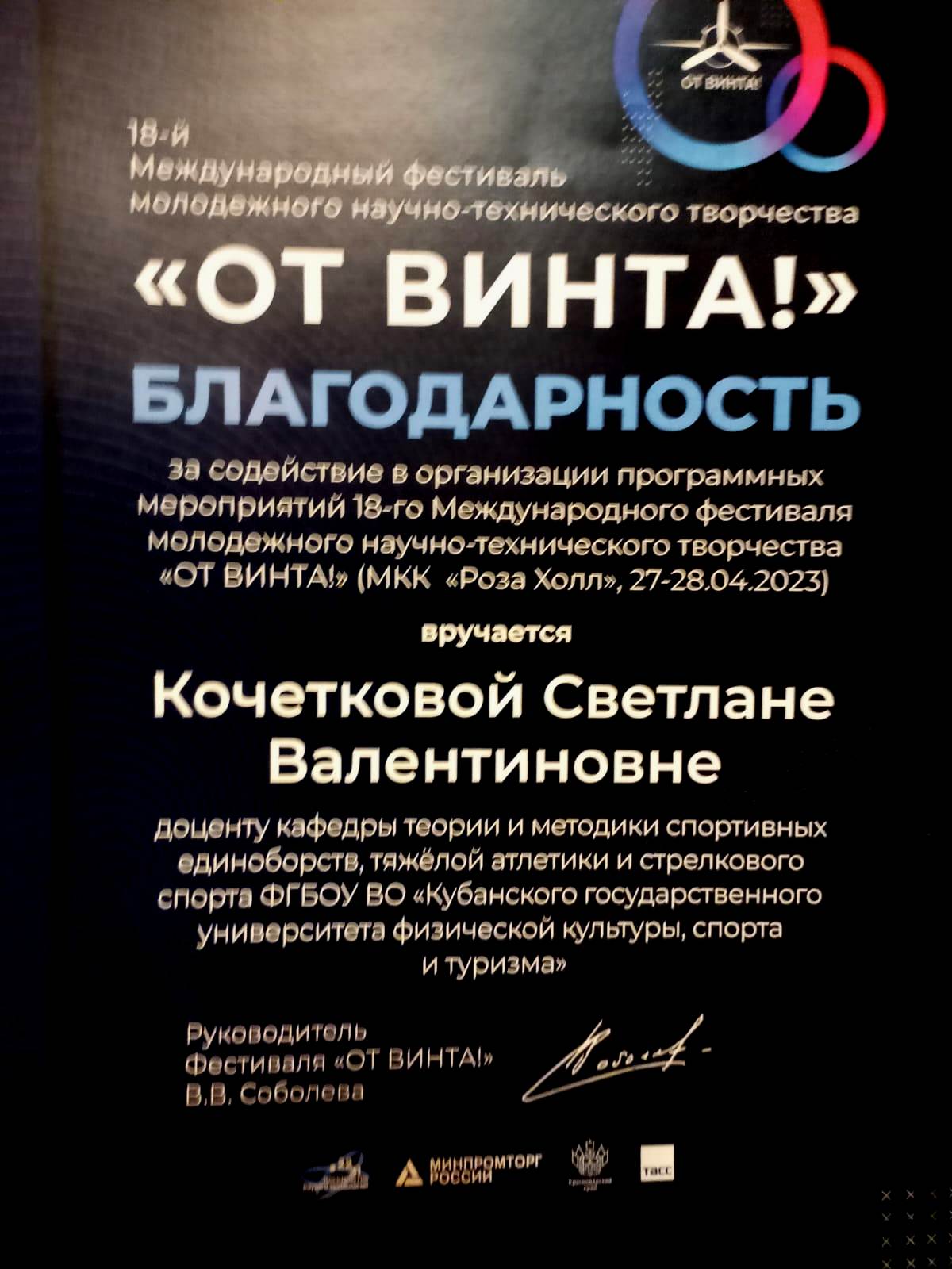 04.05.2023 Доцент Светлана Валентиновна Кочеткова представила наш университет на XVIII Международном фестивале молодежного научно-технического творчества «От Винта!».