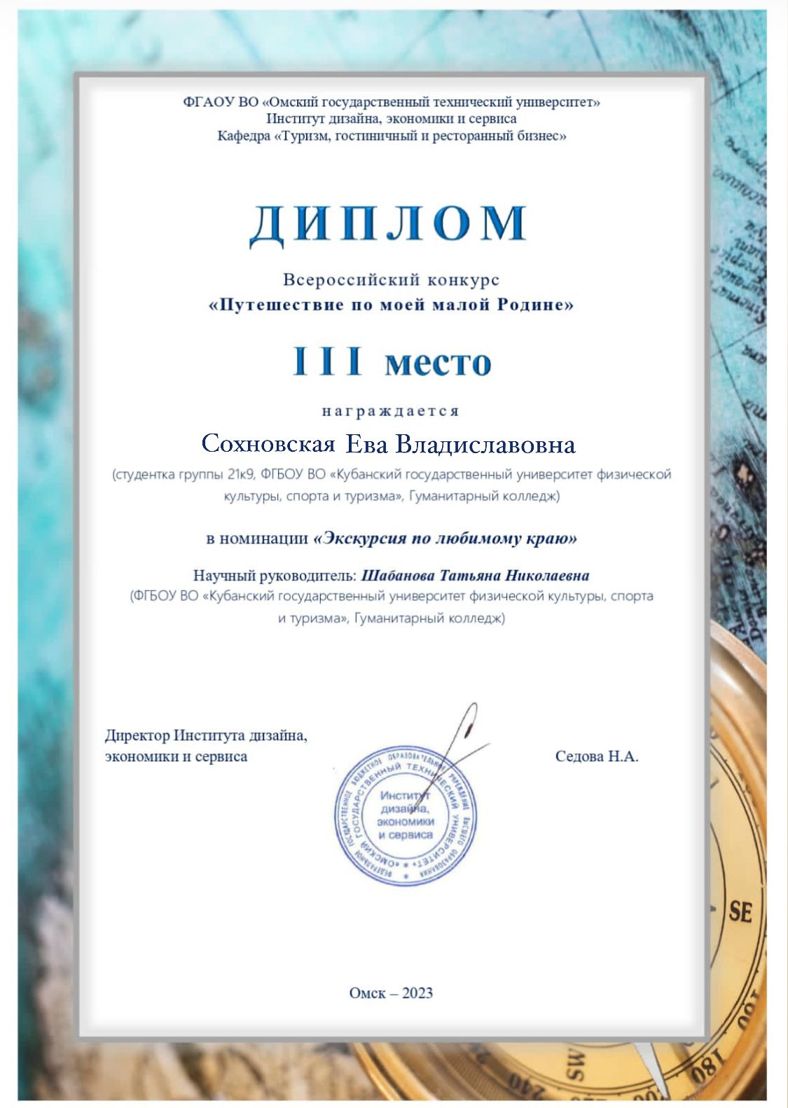 04.05.2023 Студенты Гуманитарного колледжа КГУФКСТ – призеры Всероссийского конкурса «Путешествие по моей малой Родине».