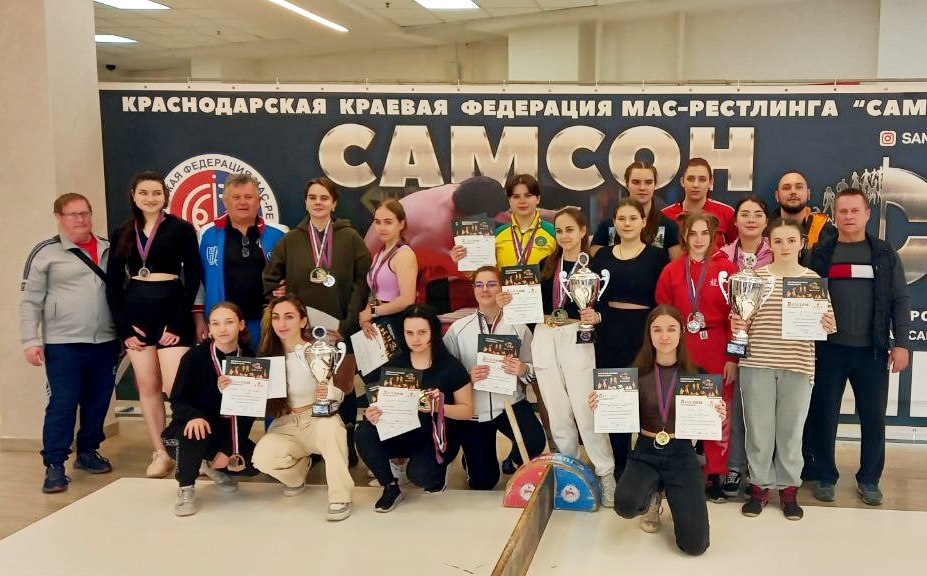 В пауэрлифтинге (жим) и мужская, и женская команды Кубанского государственного университета физической культуры, спорта и туризма заняли первые места, набрав 111 и 108 баллов соответственно. В турнире по мас-рестлингу девушки нашего вуза завоевали золото, у юношей – серебряная награда.