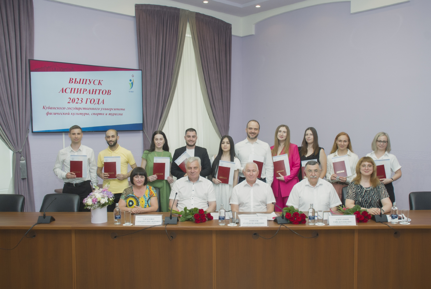 С добрыми словами и пожеланиями скорейшей защиты кандидатских диссертаций, реализации творческих идей, инновационных проектов, успешного карьерного роста к выпускникам выступили ректор университета, профессор Султан Меджидович Ахметов, первый проректор – проректор по учебной работе, профессор Алексей Александрович Тарасенко, проректор по научно-исследовательской работе, профессор Гайк Дереникович Алексанянц, заведующая кафедрой физкультурно-оздоровительных технологий, профессор Наталья Ивановна Дворкина, заведующая аспирантурой и докторантурой, доцент Олеся Андреевна Медведева.