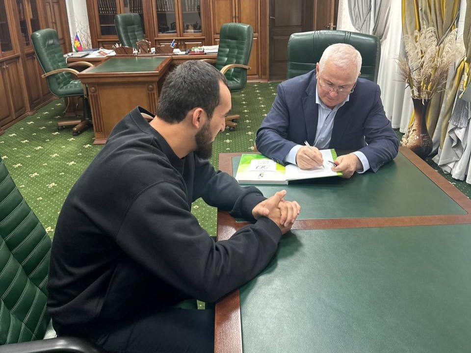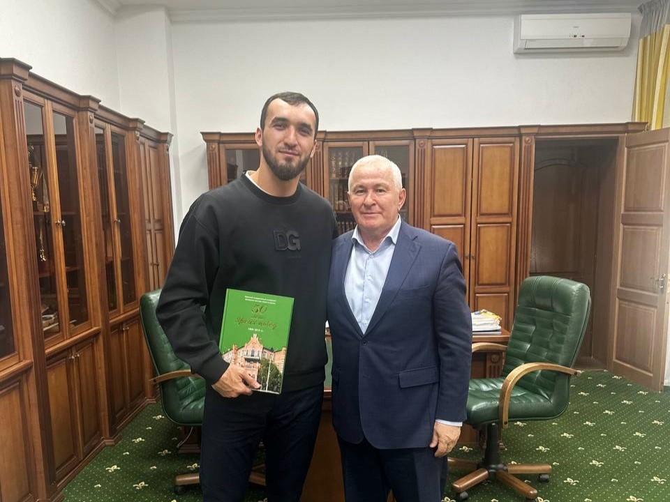10.11.2023 Ректор университета Султан Меджидович Ахметов встретился с магистрантом нашего университета, известным боксером Муслимом Гаджимагомедовым.
