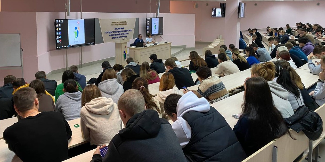 В Кубанском государственном университете физической культуры, спорта и туризма в рамках проекта "На связи с наставником" 22 ноября состоялась встреча обучающихся вуза с руководителем Центра водных видов спорта Сергеем Александровичем Мясищевым.