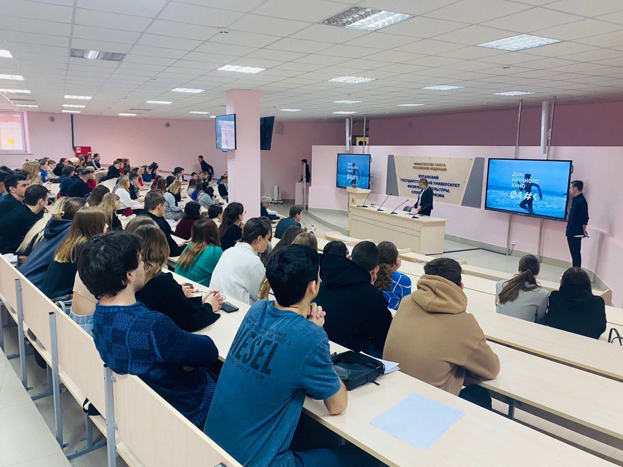 В Кубанском государственном университете физической культуры, спорта и туризма завершились Дни научного кино в рамках фестиваля актуального научного кино ФАНК. В течение нескольких дней было показано четыре научно-популярных фильма, привлекших внимание студентов и преподавателей университета - всего более трехсот человек.