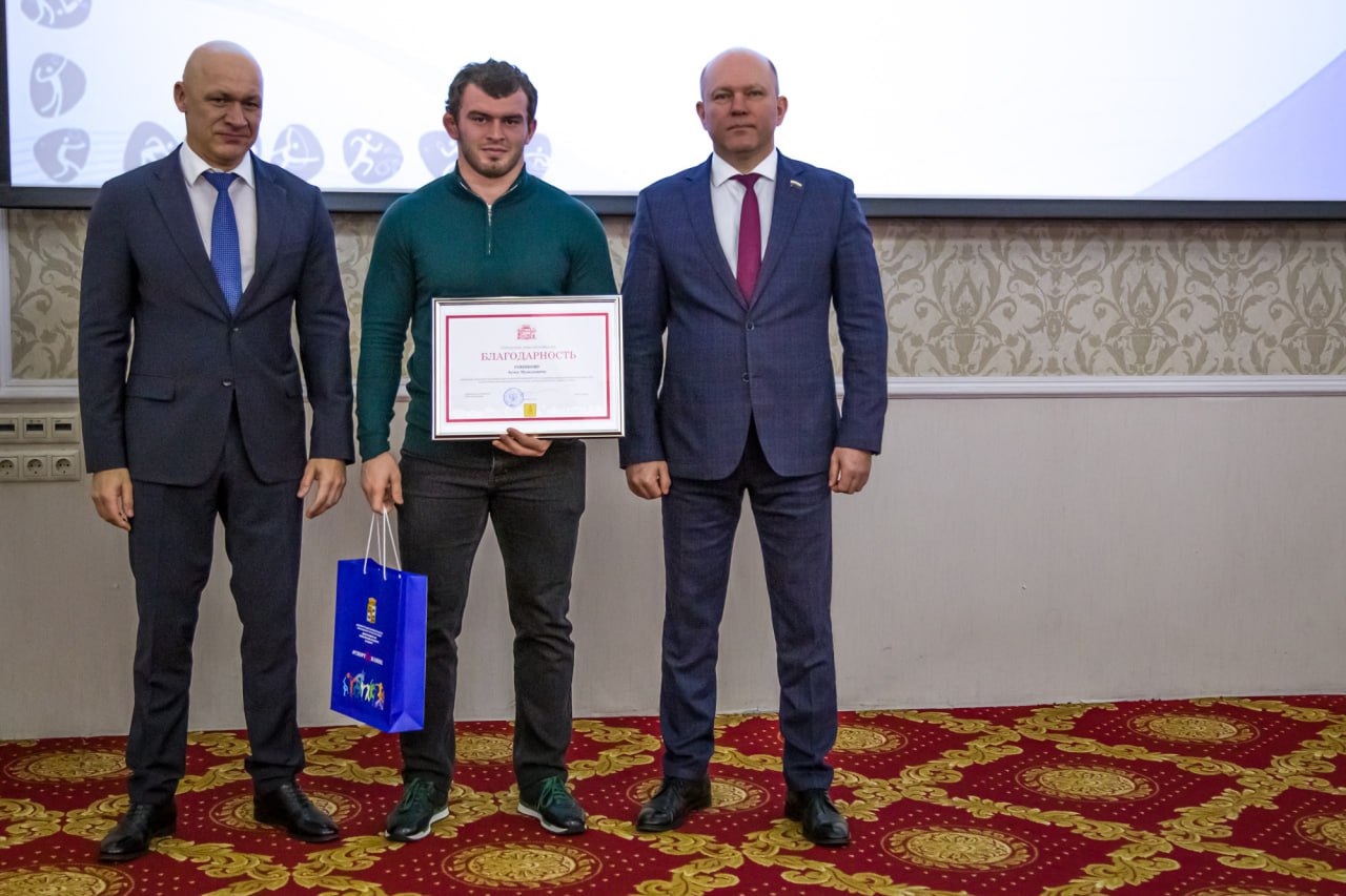 Первый заместитель главы города Максим Слюсарев и заместитель председателя Гордумы Евгений Лисицын вручали грамоты, благодарственные письма и подарки. Всего в трех номинациях: «Спортсмен года», «Тренер года» и «За преданность спорту» наградили 47 человек.