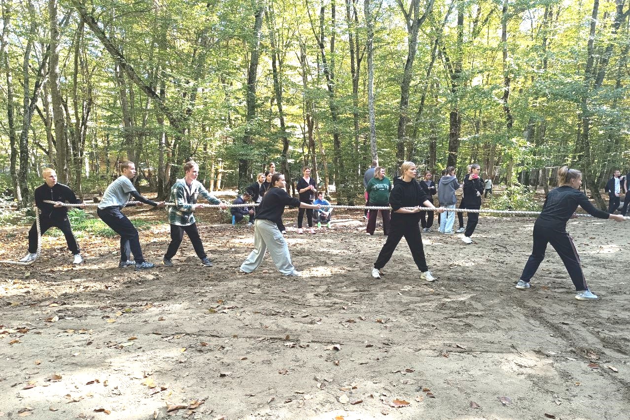 В рамках конкурсной программы студенты колледжа продемонстрировали свои знания и навыки в различных активностях: прохождении туристской полосы, соревнованиях по перетягиванию каната, а также в творческих конкурсах – на лучшую беседку, стенгазету и утреннюю зарядку.