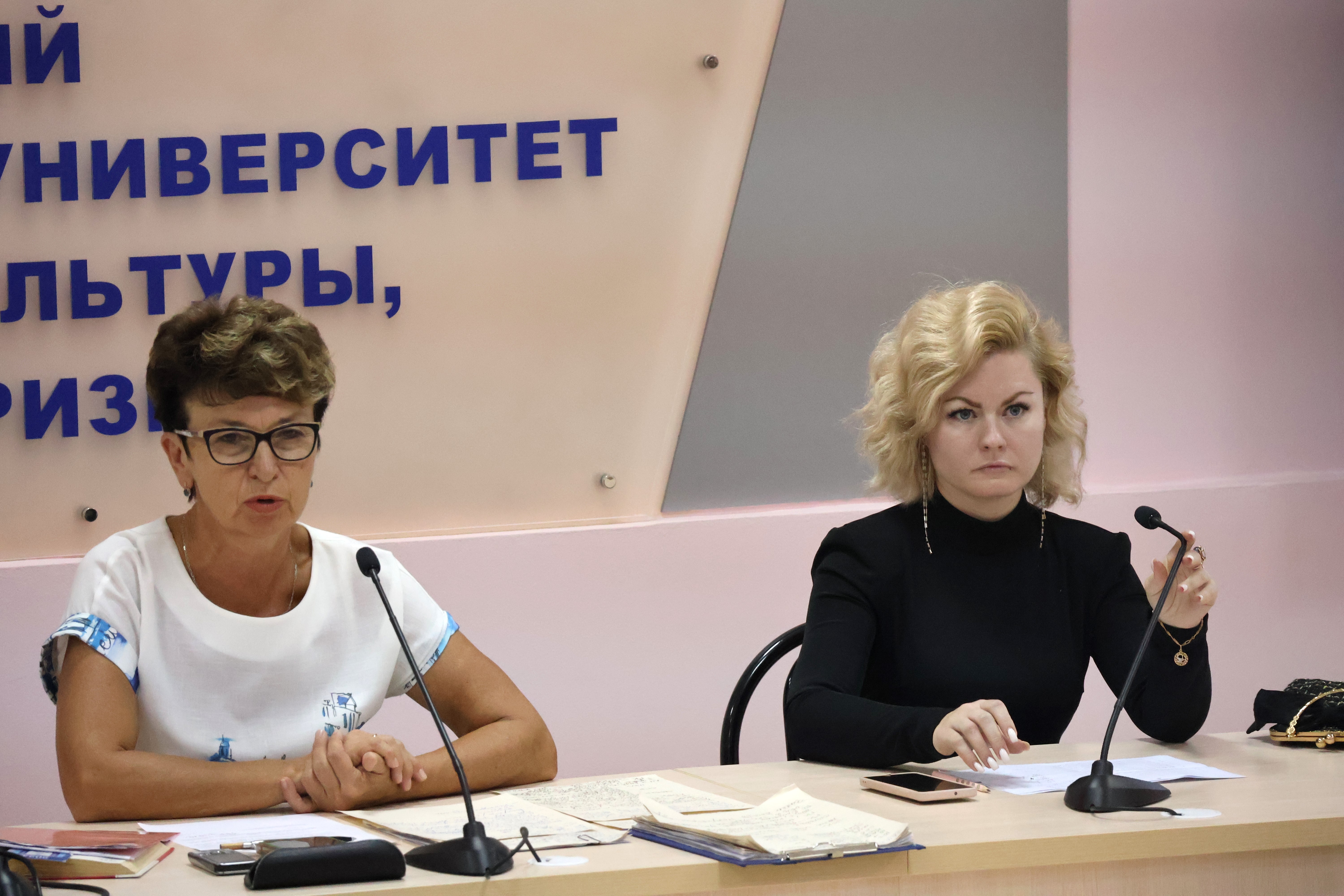 Проректор по воспитательной работе и молодежной политике доцент Татьяна Анатольевна Банникова уделила внимание старту федеральной программы «Обучение служением» в университете, работе творческих коллективов досугового центра КГУФКСТ. Татьяна Анатольевна также напомнила присутствующим о деятельности и направлении работы каждого факультета, Гуманитарного колледжа КГУФКСТ и училища (техникума) олимпийского резерва. В вузе обеспечивается работа по физкультурно-спортивной деятельности, студенческие спортивные клубы, казачество и «Казачья сотня», инклюзивное направление, работа с обучающимися с ограниченными возможностями здоровья, курирование деятельности в рамках всероссийской олимпиады школьников по двум дисциплинам: «Физическая культура» и «Основы безопасности и защиты Родины», волонтерская деятельность, поддержка одаренных, а также – работа первичного отделения общероссийского общественно-государственного движения «Движение первых».