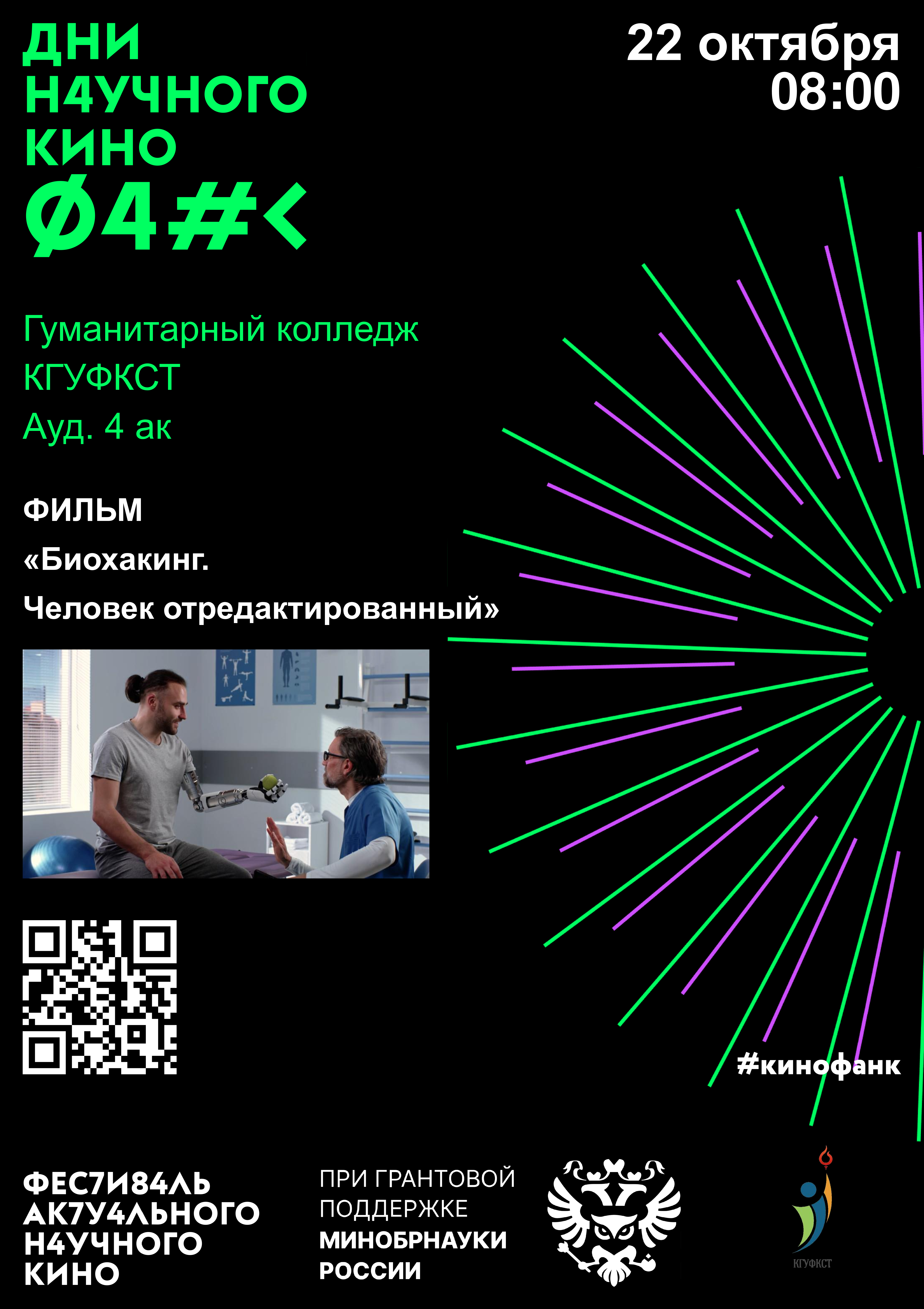 18.10.2024 Гуманитарный колледж КГУФКСТ присоединяется к проекту «Дни научного кино ФАНК».