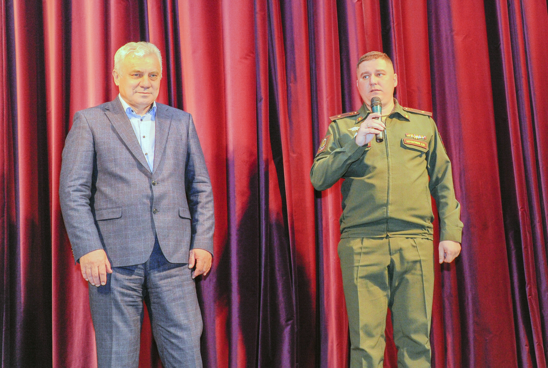 Первый проректор – проректор по учебной работе профессор Алексей Александрович Тарасенко в своем вступительном слове поздравил присутствующих мужчин с наступающим праздником и пожелал нашим защитникам Отечества крепкого здоровья, счастья и мирного неба над головой. Дмитрий Викторович выразил слова благодарности руководству университета за приглашение на праздничный концерт, пожелал добра и благополучия.