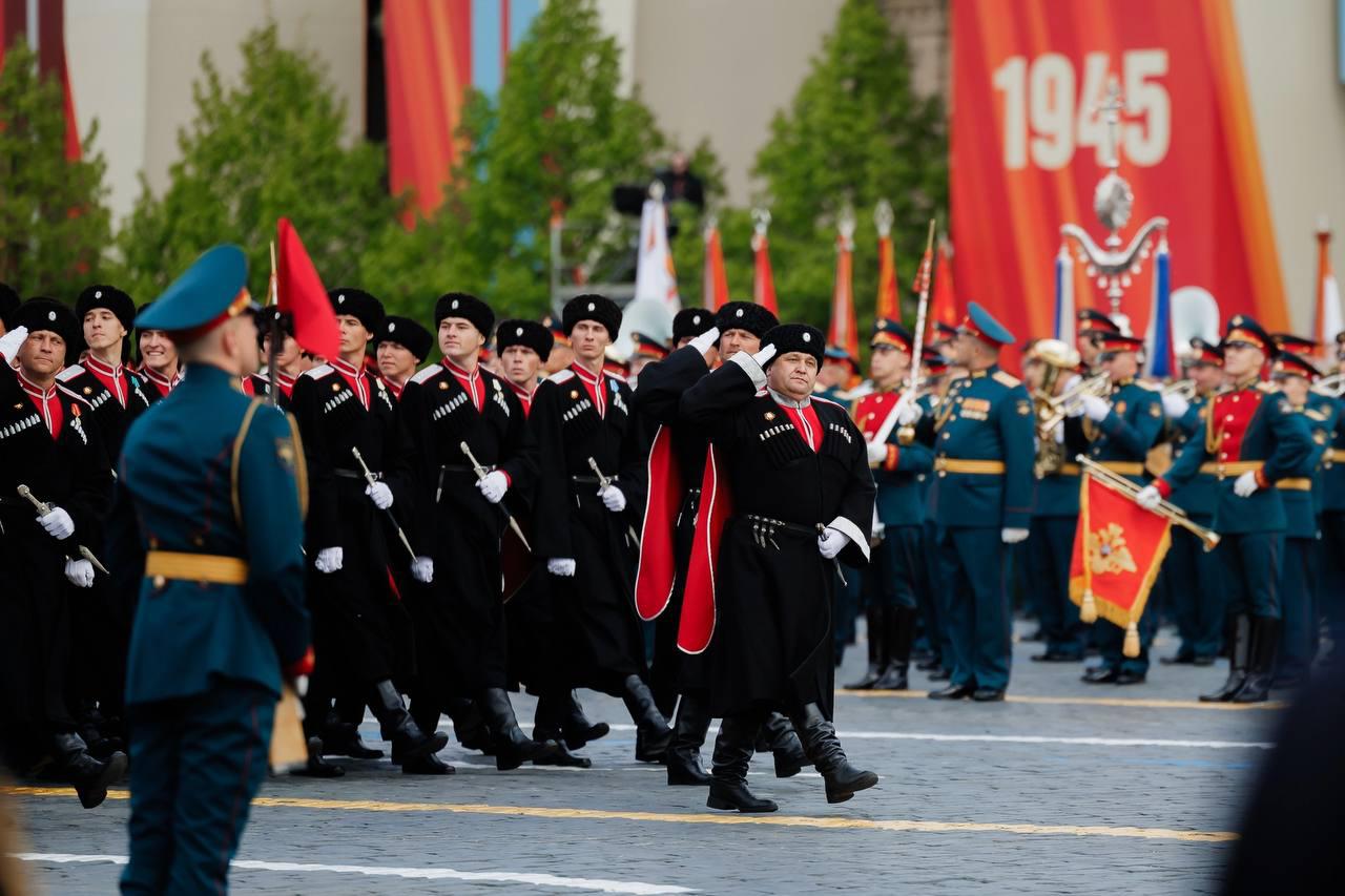 Парадный расчет Кубанского казачьего войска возглавлял заместитель губернатора Краснодарского края, войсковой атаман Александр Власов. Среди 124 казаков были участники специальной военной операции, дружинники, спортсмены, представители военно-патриотических клубов и казачьих сотен высших учебных заведений края. Кубанский государственный университет физической культуры, спорта и туризма представляли: Тимур Хлуднев (заочный факультет физической культуры и спорта), Денис Матвеев (факультет физической культуры) и Алексей Гребенников (факультет спортивного менеджмента, педагогики и психологии).