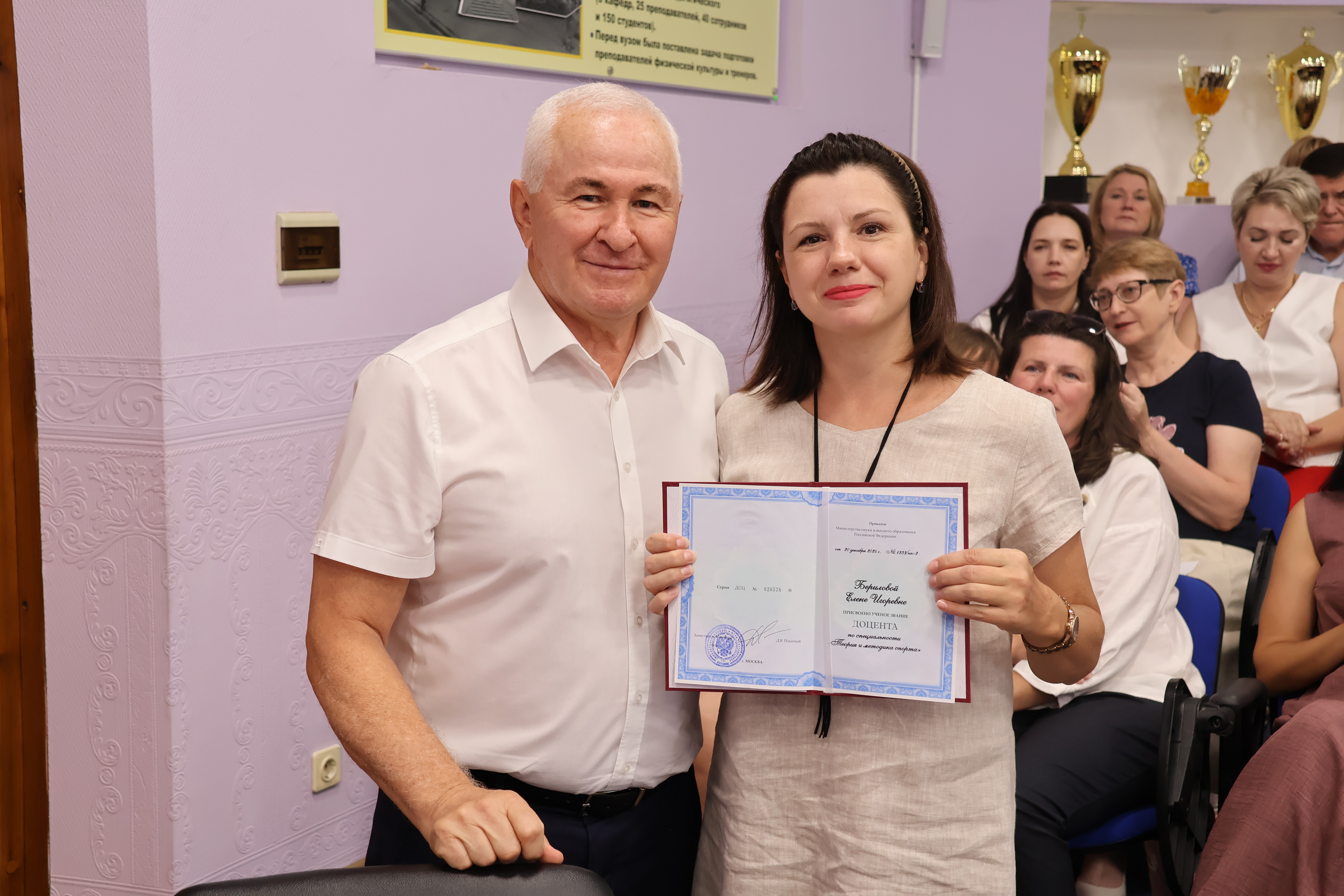 Вручены аттестаты о присвоении ученого звания доцента преподавателям кафедры психологии:- Бериловой Елене Игоревне по научной специальности «Теория и методика спорта»;