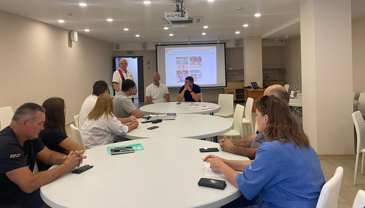 14 сентября на базе СУОЦ «Волейград», п. Витязево, г. Анапа был проведен круглый стол на тему «Современное состояние и направления развития волейбола», где были рассмотрены вопросы дальнейшего сотрудничества по организации и проведению спортивных мероприятий, а также подготовке судей по волейболу. С приветственным словом выступал председатель правления «Ассоциация волейбола «Юг и Северный Кавказ» Юрьев Егор Юрьевич.