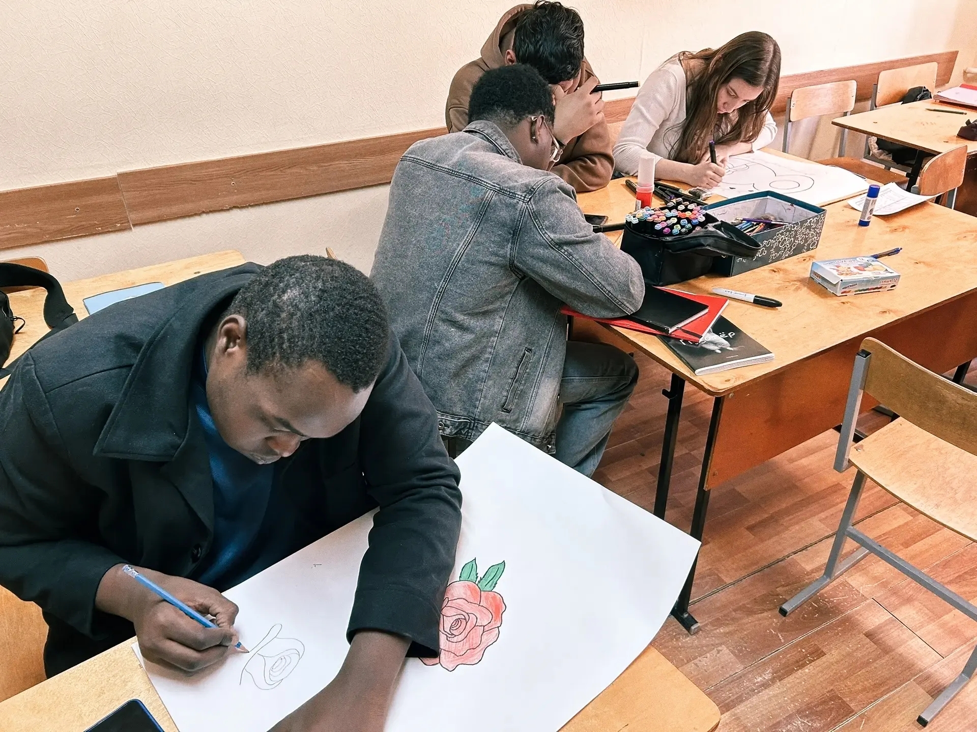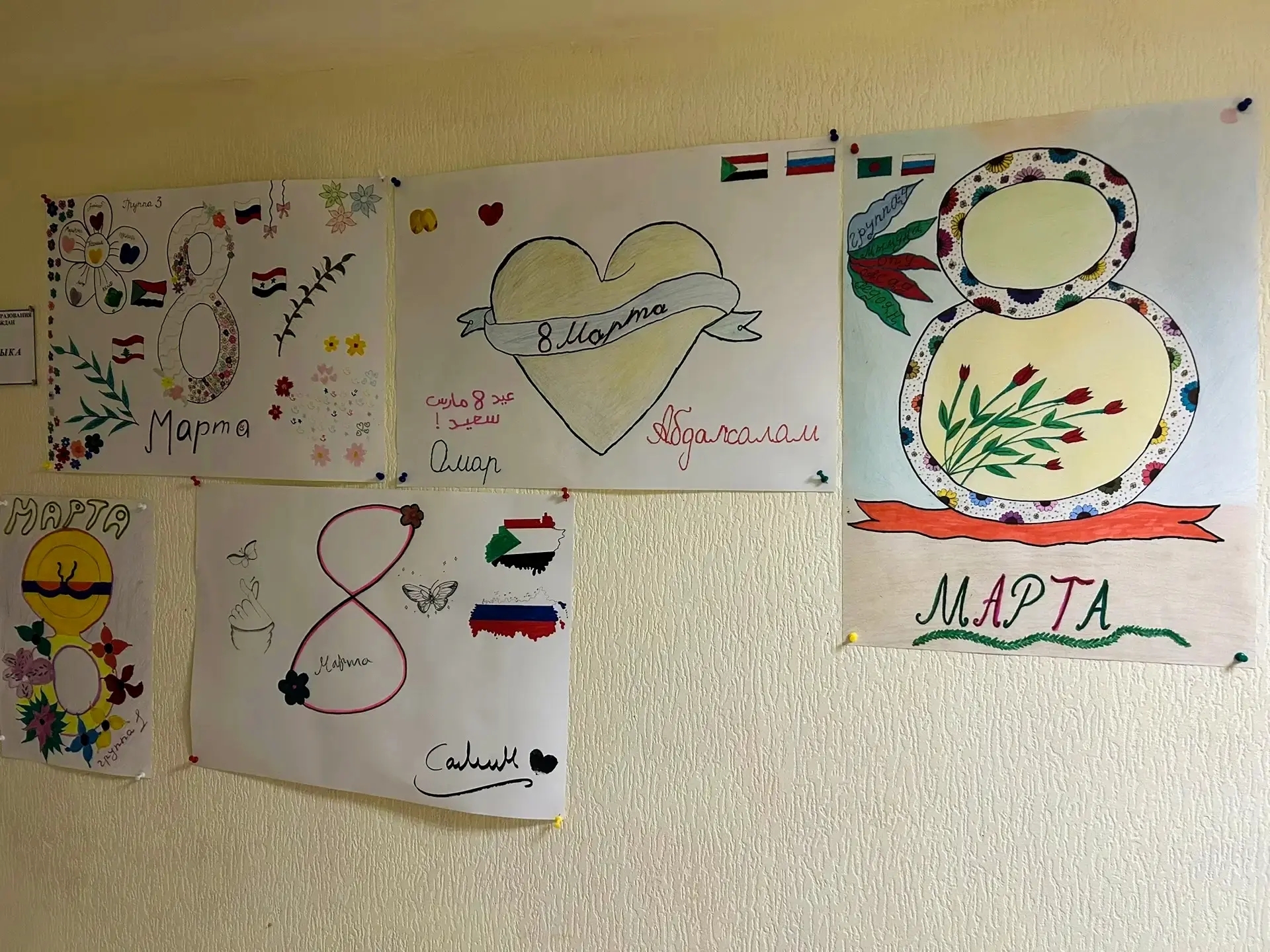 После знакомства с историей праздника иностранные обучающиеся подготовили замечательные плакаты к Международному женскому дню.