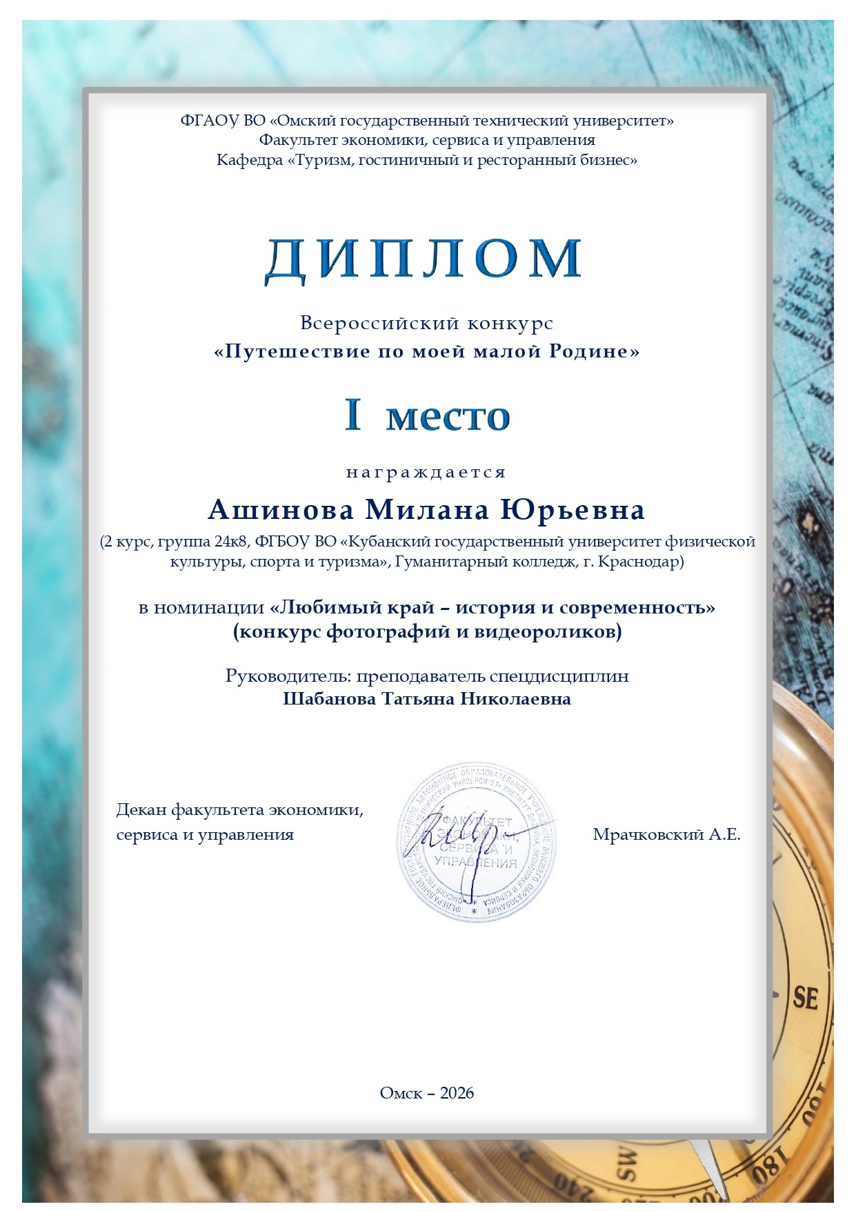 26.03.2026 Студенты Гуманитарного колледжа КГУФКСТ – победители и призеры Всероссийского конкурса «Путешествие по моей малой Родине – 2026».