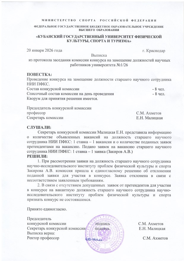 **В связи с отсутствием оператора портала и службы технической поддержки на сайте https://yченые-исследователи.рф, информация о вакансиях должностей научных работников ФГБОУ ВО КГУФКСТ и проведении конкурса размещается на сайте Кубанского государственного университета физической культуры, спорта и туризма. Заявки и документы для участия в конкурсе на замещение должности – заведующего лаборатории « Научно-исследовательской лаборатории социально- педагогических измерений в образовании» Кубанского государственного университета физической культуры, спорта и туризма подаются через сайт университета.