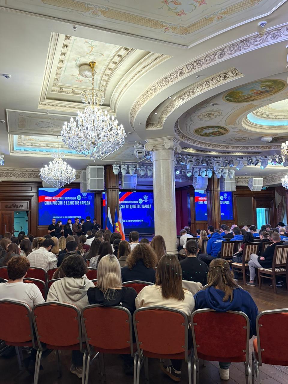 Программа конференции была насыщенной и плодотворной. В ходе конференции активисты факультета смогли принять участие в таких тематических диалоговых площадках, как «Сила России» и «Единство народа».