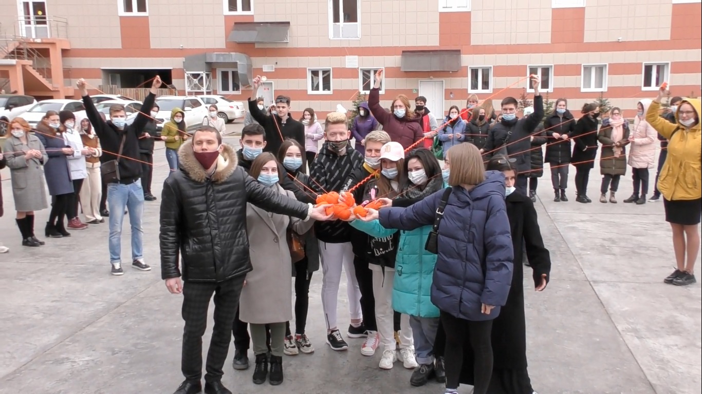Обучающиеся совместно с кураторами передали друг другу символ акции - оранжевую нить, символизирующую объединение и неразрывную связь перед лицом общей угрозы.