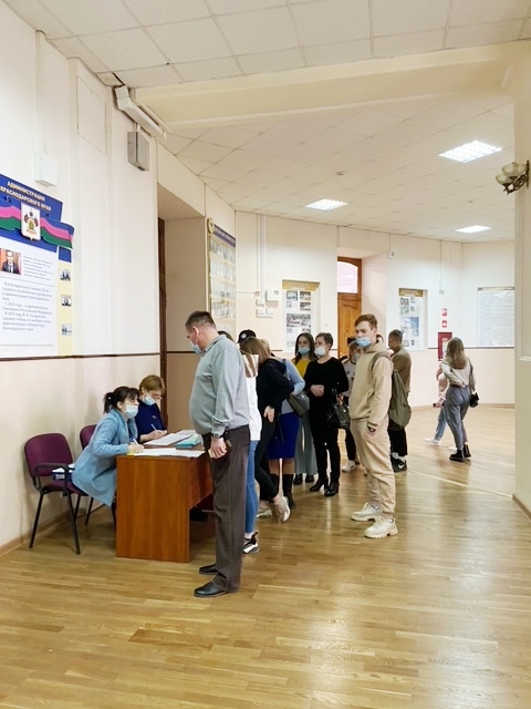 Волонтеры университета помогали в подготовке зала в соответствии с требованиями РосПотребНадзора, выдавали гостям маски и помогали им в навигации по вузу.